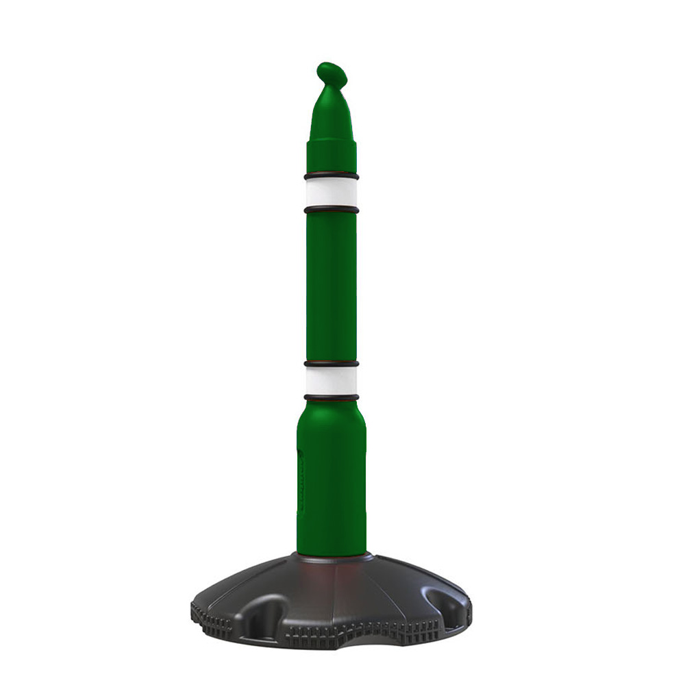 Skipper groene standaard met voet voor Skipper afzetlinthouders zijn een fraai alternatief voor pilonnen. De standaard is voorzien van 2 stroken met klasse 2 reflectie. De voet is vulbaar met water of zand.